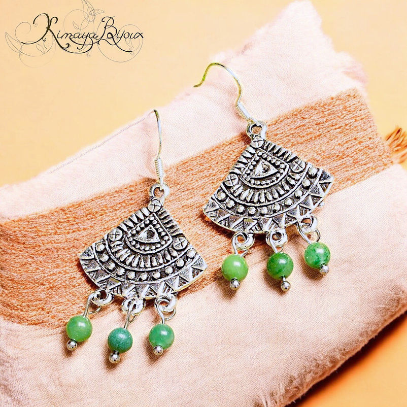 Boucles d'oreilles tribales Jade vert d'Afrique , crochets argent 925